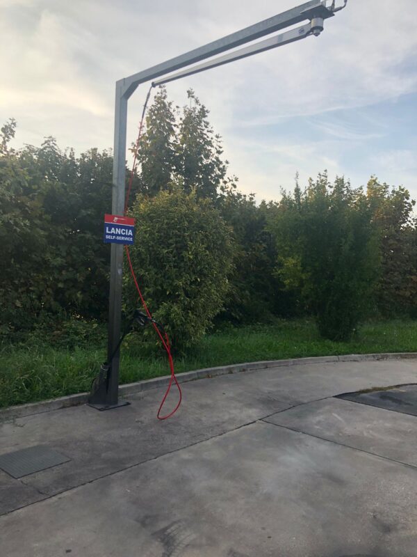 Palo di prelavaggio completo di tubo e lancia alta pressione. Fissaggio a pavimento.